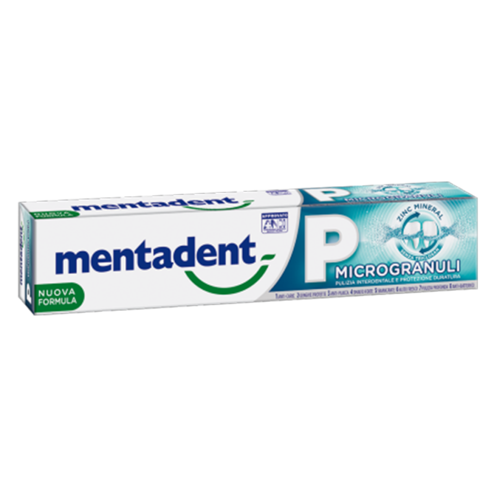 Il dentifricio Mentadent P microgranuli garantisce pulizia interdentale e protezione duratura.