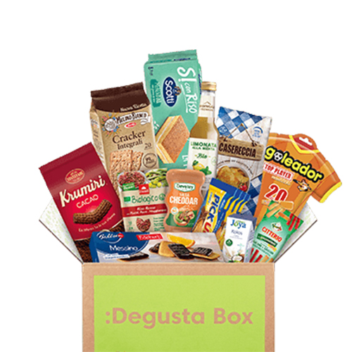 Degusta Box è una scatola di abbonamento mensile, contenente prodotti alimentari e bevande anche nuove sul mercato. I clienti ricevono una deliziosa sorpresa ogni mese, contenente fino a 15 deliziose prelibatezze. Prodotti dalla migliori marche, molti nuovi sul mercato! Il prezzo standard è di soli 15,99 €, la consegna è gratuita e la nostra scatola contiene prodotti per un valore superiore a 25,00 €.