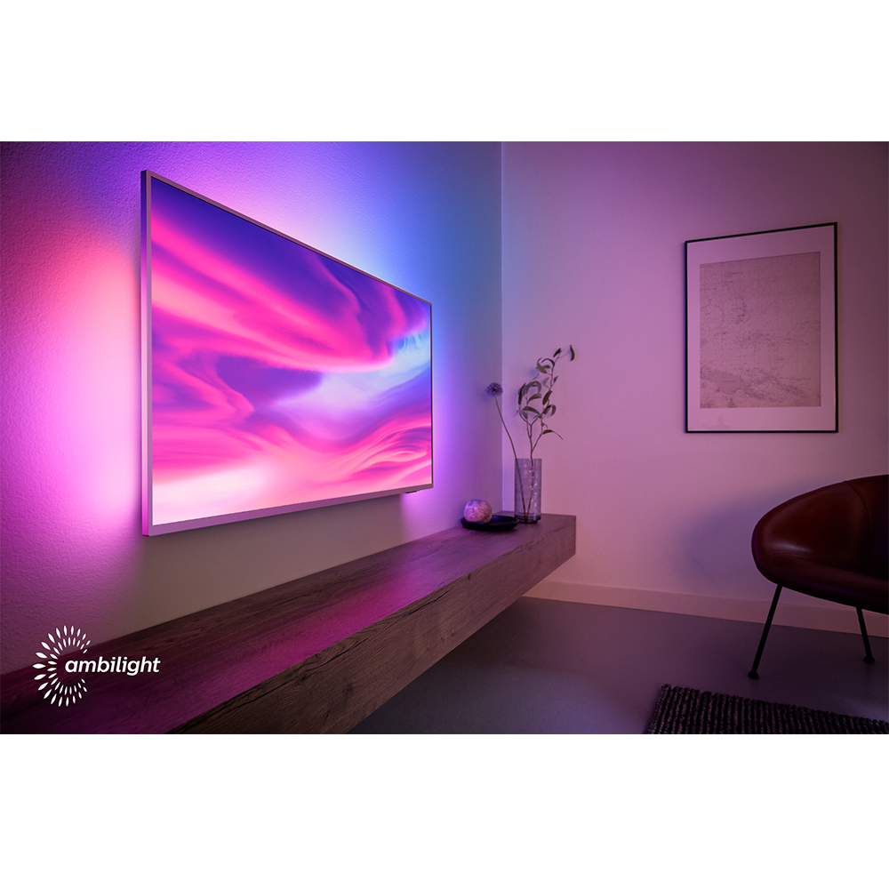 Con Philips Ambilight, film e giochi sono più coinvolgenti, la musica è accompagnata da uno spettacolo di luci e il tuo schermo sembra più grande grazie ai LED intelligenti lungo i bordi che proiettano i colori dello schermo sulle pareti e nella stanza, in tempo reale. Avrai un’illuminazione ambientale perfettamente sincronizzata e un motivo in più per apprezzare il tuo TV.