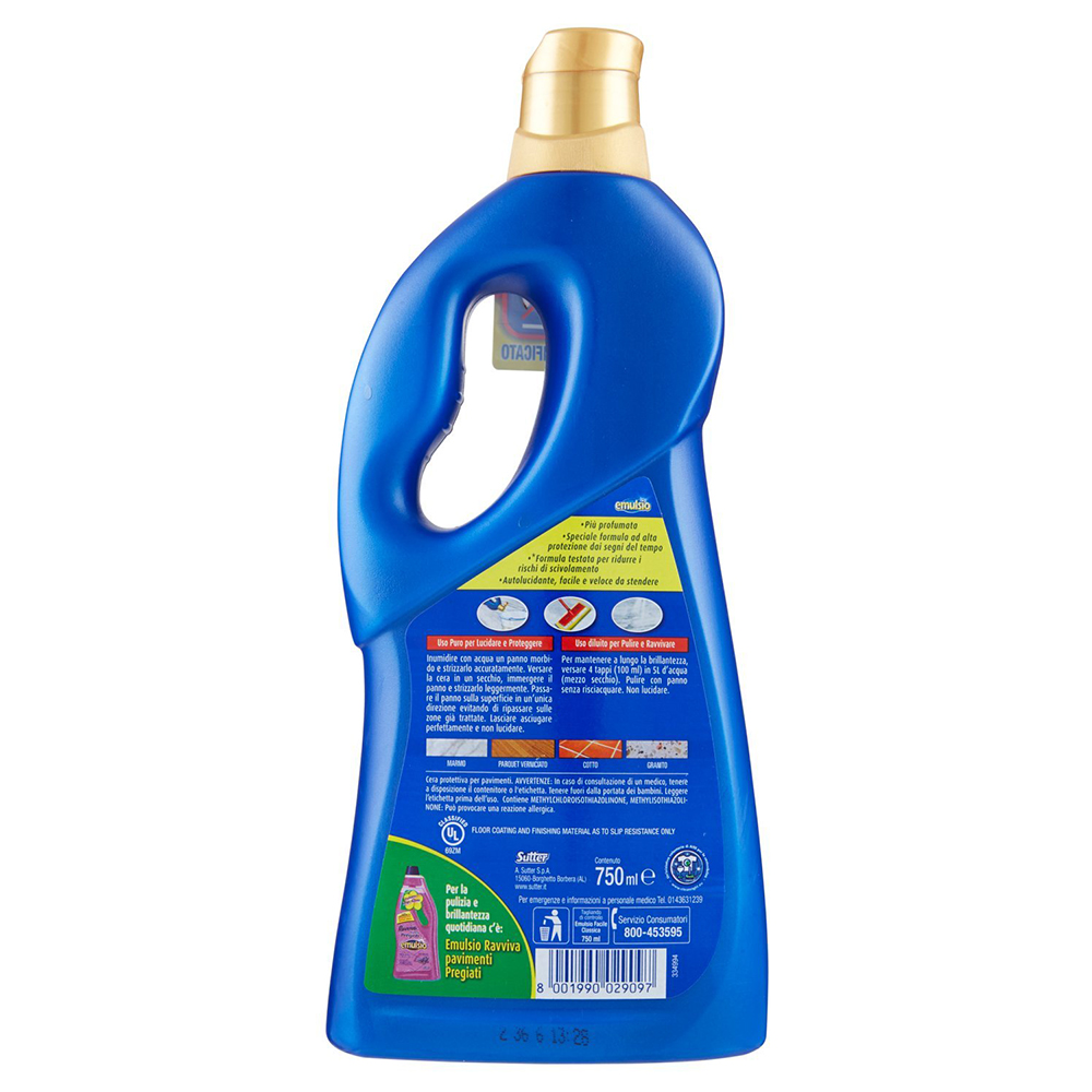 Per mantenere a lungo la brillantezza, versare 4 tappi (100 ml) in 5L d’acqua (mezzo secchio). Pulire con panno senza risciacquare. Non lucidare.