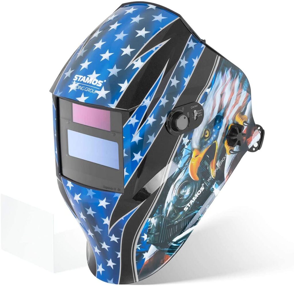 Il casco per saldatura automatico HERO della serie EASY di Stamos Welding Group si distingue per le sue buone proprietà ottiche, la velocità di reazione molto elevata, il suo peso leggero e il suo design individuale. Il versatile casco per saldatura può essere utilizzato in tutti i comuni lavori con la saldatrice per saldatura MIG e MMA. Il casco per saldatura automatico funziona con una larghezza di banda di protezione dalla luce di 9-13 DIN. Le dimensioni dello schermo di 94 x 36 mm sono molto grandi. Ciò ti consente di tenere d’occhio tutti i dettagli essenziali mentre lavori con la tua saldatrice. La cartuccia a lunga durata del casco HERO è alimentata da potenti celle solari. Il casco per saldatore estremamente leggero, realizzato in robusta plastica, pesa solo 500 g, quindi non ti limiterà durante lavori lunghi. La maschera HERO è facile da adattare a qualsiasi forma della testa.