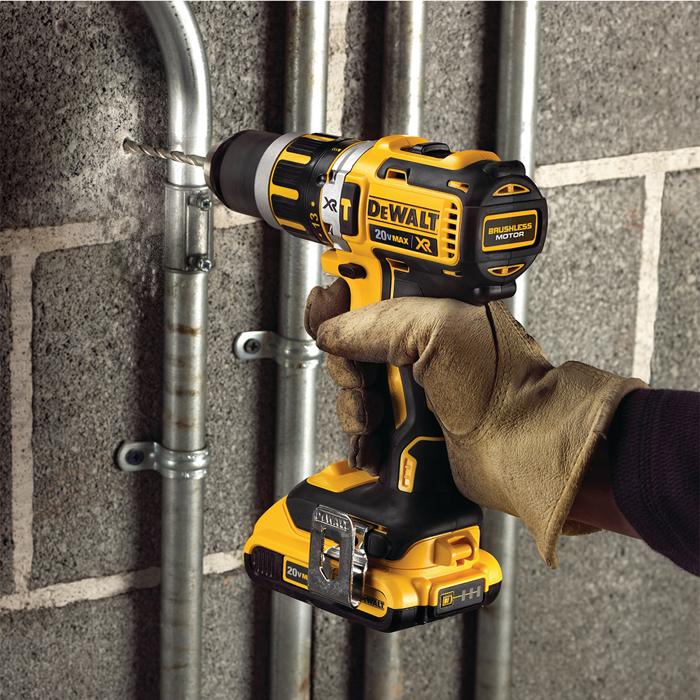 Trapano combinato con martello ed avvitatore Dewalt compatto, brushless, 18 V con batterie da 2.0 Ah.